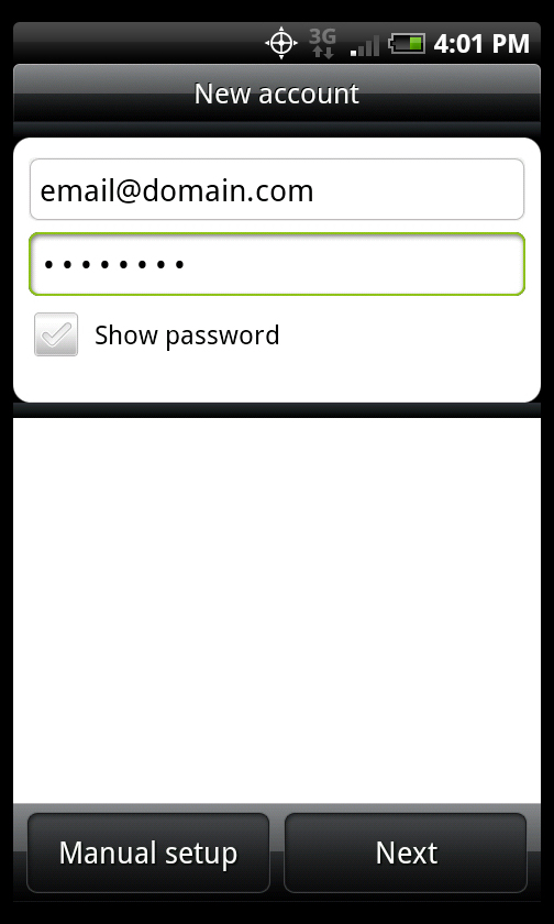 Congratulations, e-mail is now successfully configured on your Android 2.1 device!