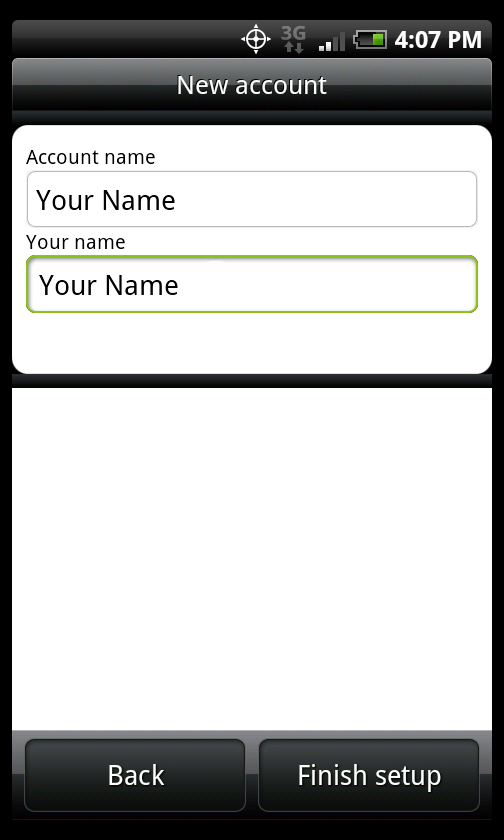 Account name: Simply enter a name that will distinguish this account from others that might exist on this device.