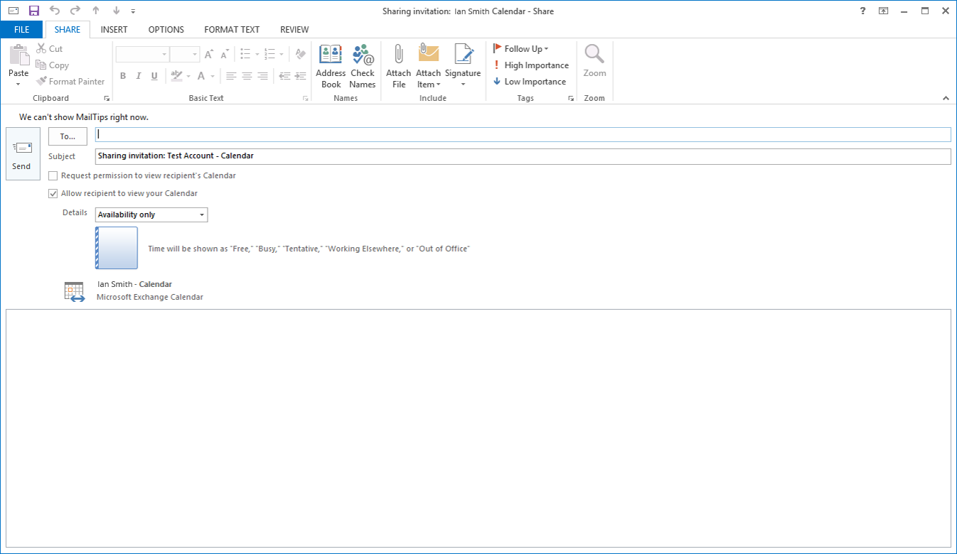3. Simply add whom you wish to Share the Calendar with as a “To” Contact.