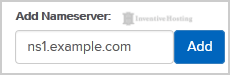6. Navigate to "Add Nameserver" and enter our name server in the text field (for example ns1.example.com). Then click on the "Add" button. Repeat this to add our 2nd name server.