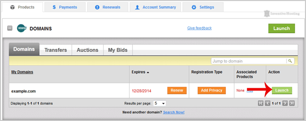 4. Click on "Launch" next to the domain you wish to manage.