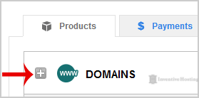 3. After a successful login, click on the + (plus) icon next to Domains in the "Products" tab.
