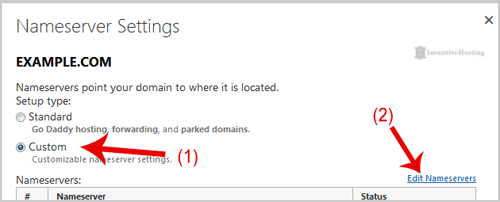 6. In "Nameservers Settings", select "Custom" and then click on the "Edit Nameservers" Link.