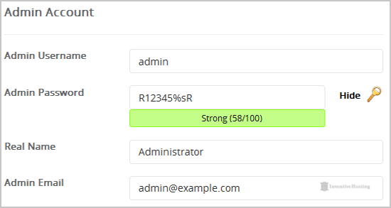 • Admin Username: Your new Xoops username (for security reason do not use the "Administrator" or the "Admin" username.)