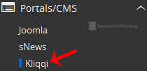 4. On the left side of your screen you should locate the "Portal/CMS" category. Click on it and then click on the "Kliqqi" link that will appear.
