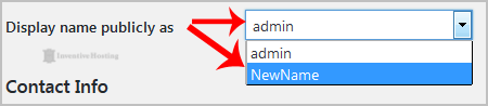4. In the option "Display name publicly as", choose your newly added nickname from the drop-down menu.