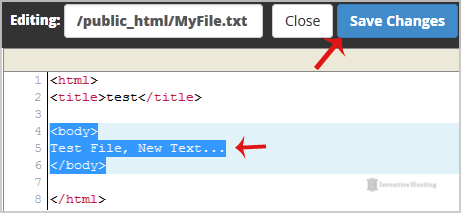 7. Make changes to your file and then click on the "Save Changes" button.