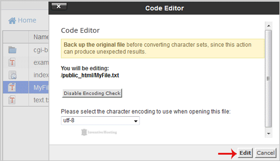 6. If the small "Code Editor" window is open, click on the "Edit" button, which will open a new window with options you can edit.