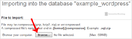Under "File to Import" click on the "Browse" button, Select SQL file from your PC.
