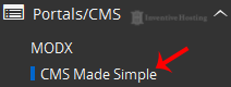 4. On the left side of your screen you should locate the "Portal/CMS" category. Click on it and then click on the "CMS Made Simple" link that will appear.