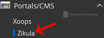 4. On the left side of your screen you should locate the "Portal/CMS" category. Click on it and then click on the "Zikula" link that will appear.