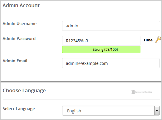 • Admin Username: Your new Website Baker username (for security reason do not use the "Administrator" or the "Admin" username.)