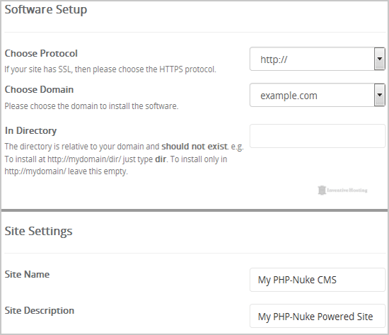 - Site Name: Enter the name of your website, such as "PHP-Nuke".