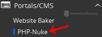 4. On the left side of your screen you should locate the "Portal/CMS" category. Click on it and then click on the "PHP-Nuke" link that will appear.