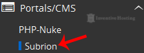4. On the left side of your screen you should locate the "Portal/CMS" category. Click on it and then click on the "Subrion" link that will appear.
