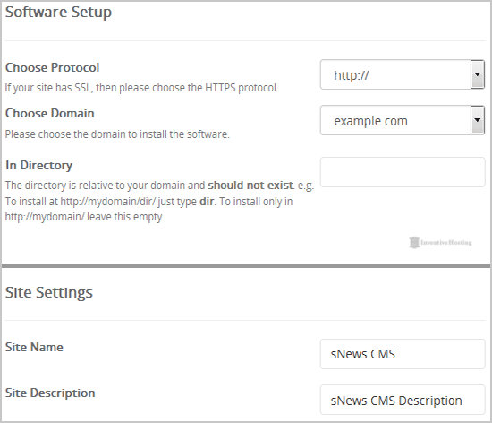 Note: Copy the admin username and password on a notepad because you will need these login details to access the admin area of your sNews Website.