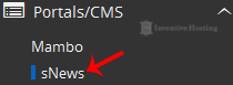 4. On the left side of your screen you should locate the "Portal/CMS" category. Click on it and then click on the "sNews" link that will appear.