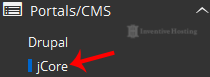 4. On the left side of your screen you should locate the "Portal/CMS" category. Click on it and then click on the "jCore" link that will appear.