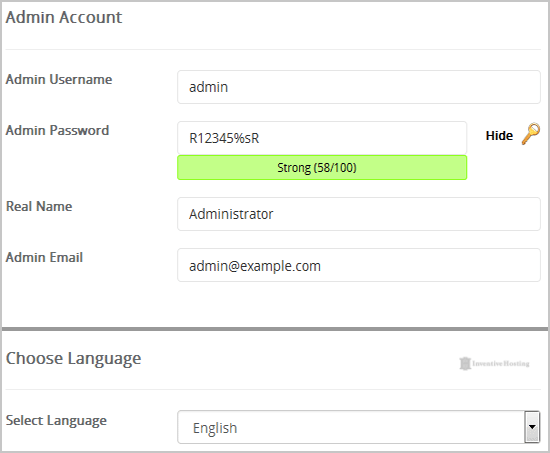 • Admin Username: Your new Bolt username (for security reason do not use the "Administrator" or the "Admin" username.)