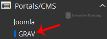 4. On the left side of your screen you should locate the "Portal/CMS" category. Click on it and then click on the "GRAV" link that will appear.