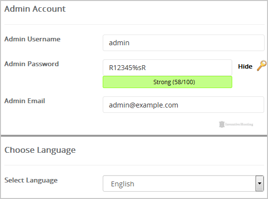 • Admin Username: Your new Kirby username (for security reason do not use the "Administrator" or the "Admin" username.)