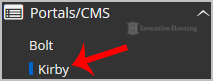 4. On the left side of your screen you should locate the "Portal/CMS" category. Click on it and then click on the "Kirby" link that will appear.