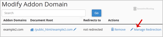 3. Under "Modify Addon Domain", locate the addon domain and click on "Manage Redirection".